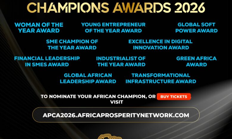 The Africa Prosperity Network (APN), with the support of KPMG, has opened nominations for the Africa Prosperity Champions Awards (APCA) 2026, which will be presented at the Africa Prosperity Champions Awards & Presidential Gala Dinner on 6 February 2026 at the Kempinski Gold Coast Hotel, Accra, Ghana, as part of the grand finale of the Africa Prosperity Dialogues (APD) 2026.