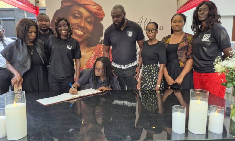 Friends of Amina Rawlings commiserate with her and family.