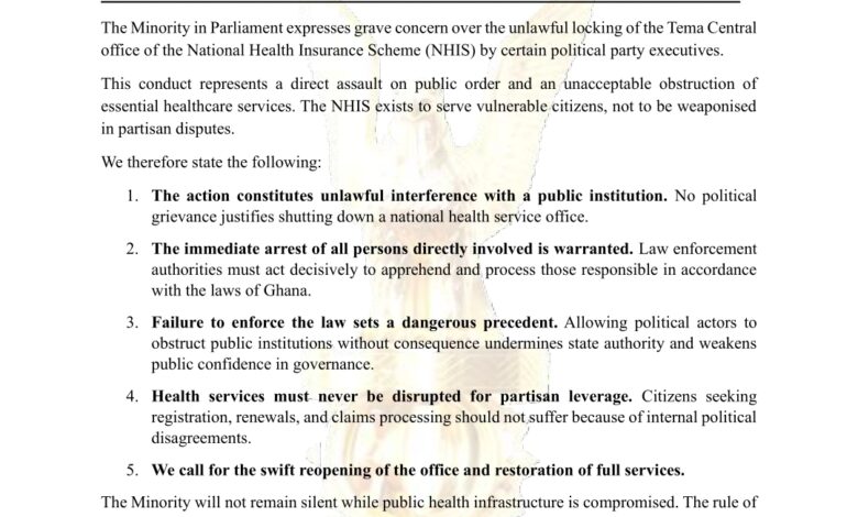 5. **Call for Reopening:** The Minority has demanded the swift reopening of the NHIS office and a restoration of its full services to the public.