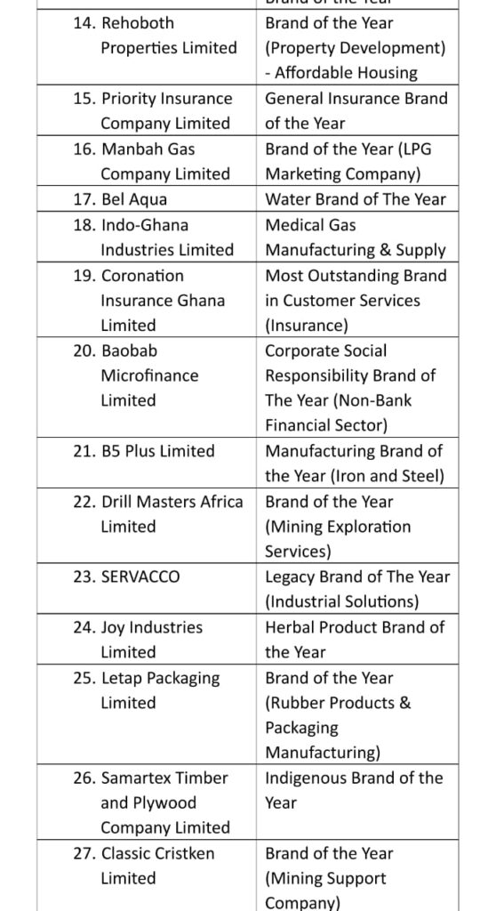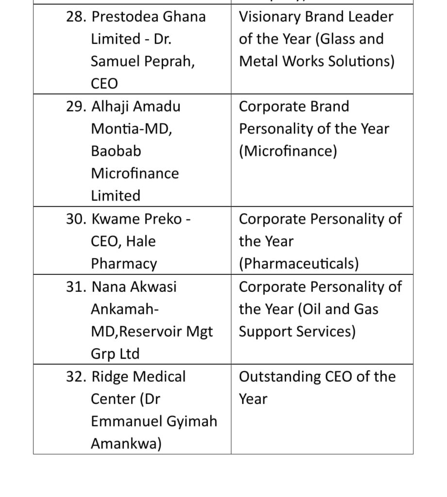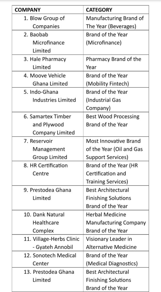 Bel Beverages, Indo-Industries Ghana Ltd, B5 Plus, and Hale Pharmacy’s CEO, Mr. Kwame Preko, were among the notable winners.