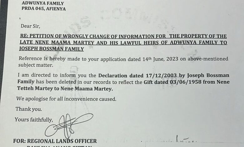 According to the families, the illegal sale of lands belonging to them and that of Samuel Marmah Martey of Adawuya Family in Afienya by these two wanted fraudster, should not be entertained by the Lands commission in any measure whatsoever by attempting to re-register these lands in the name of the two brothers.