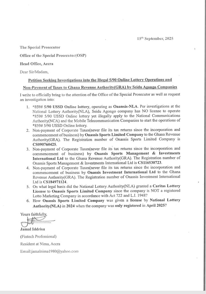 A petition filed at the Office of the Special Prosecutor (OSP) by fintech professional Jamal Iddrisu, a resident of Nima, calls for a full-scale probe into what it describes as “a grand scheme of corruption, fraud and abuse of public office.”