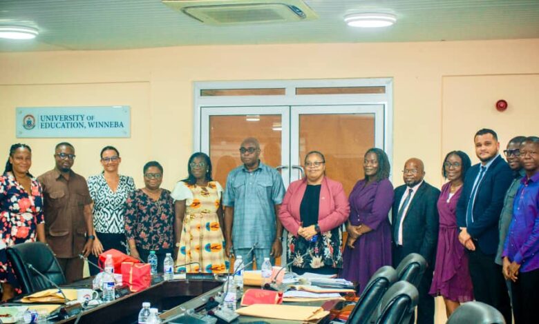 On March 26, the delegation visited the University of Education in Winneba where they met with the Vice Chancellor, Professor Stephen Jobson Mitchual, and senior officials including Mrs. Wilhelmina Tete-Mensah, Acting Registrar; Professor Frimpong Kaakyire Duku, Principal of the College for Distance and E-Learning; Professor Rebecca Akpanglo-Nartey, Principal of the College of Languages and Education; and several other department heads.